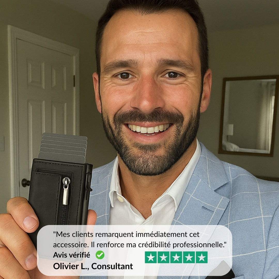 Son design intelligent et son format compact vous offre un espace de rangement optimal sans l’encombrement d’un portefeuille traditionnel. Dites adieu aux poches qui déforment vos vêtements.